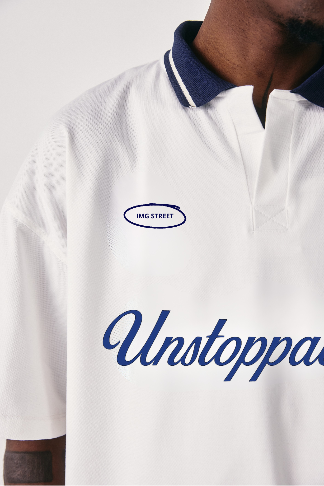 Este polo tipo camiseta en color blanco hueso confeccionado en algodón Lacoste premium de 320g, estampado en alto relieve en el pecho y con cuello en azul marino combina la sutileza de los clásicos con una horma moderna de silueta relajada.