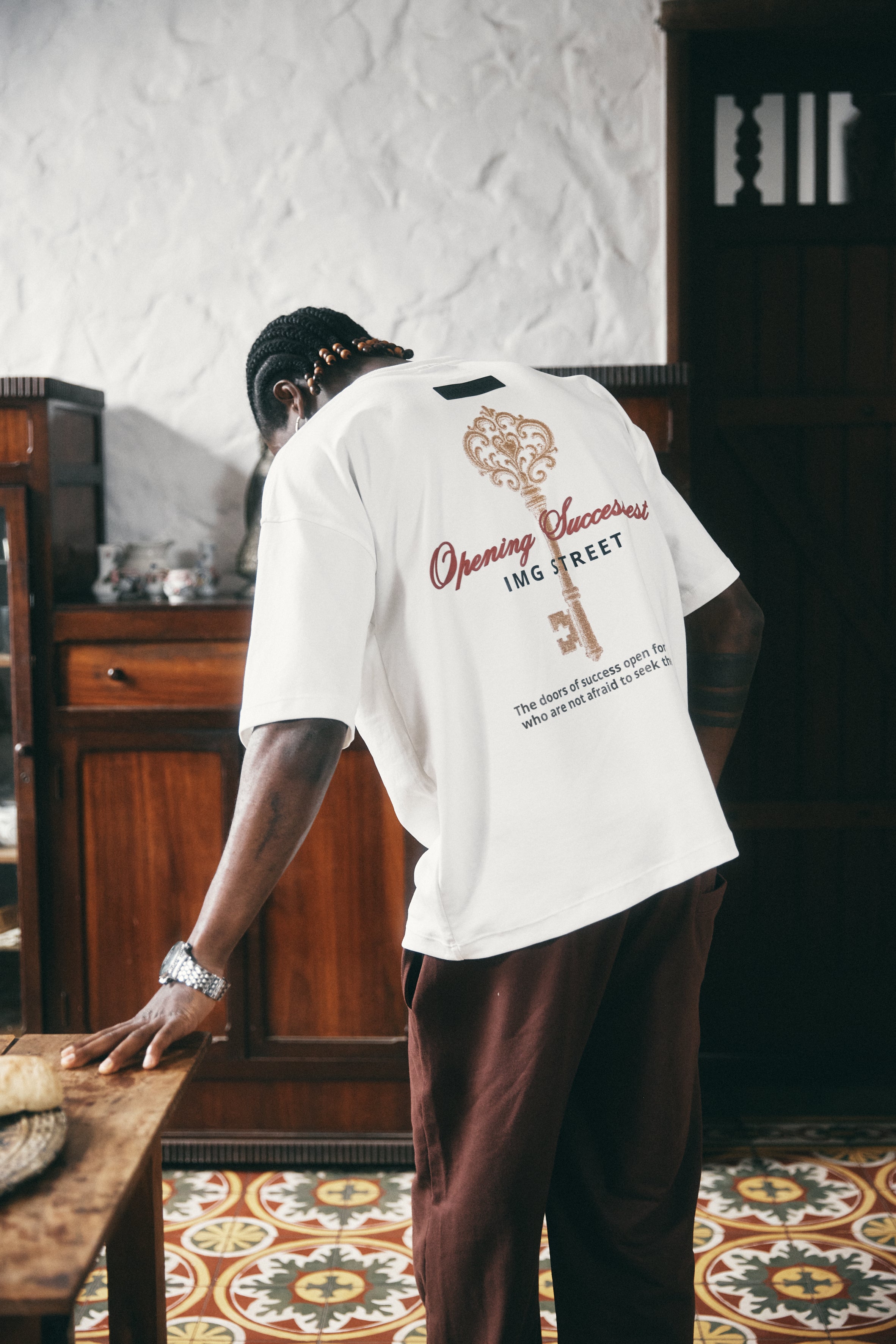 Camiseta oversized en algodón de alto gramaje de 270. Estampado grafico en la parte de atras, con letras en alta densidad