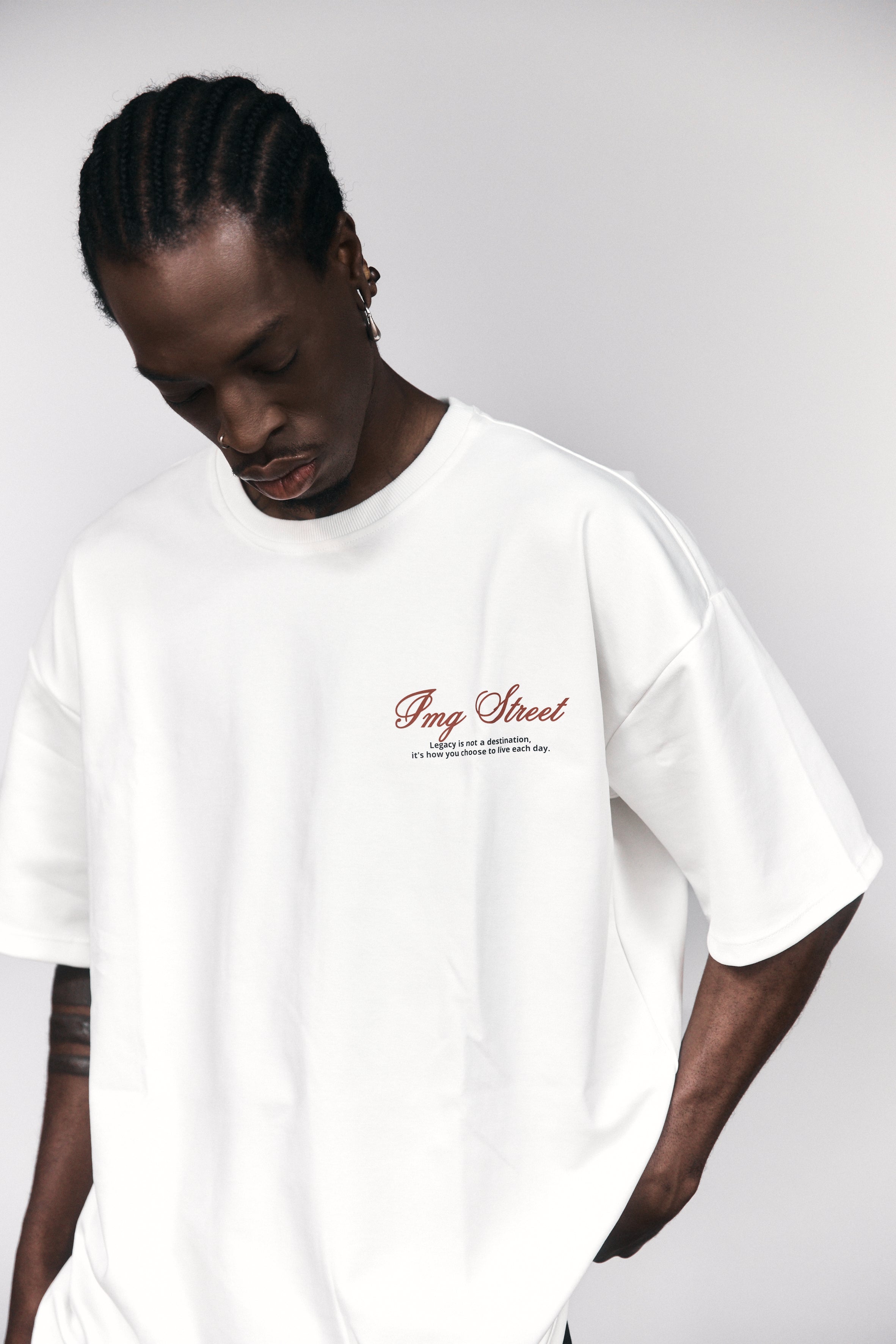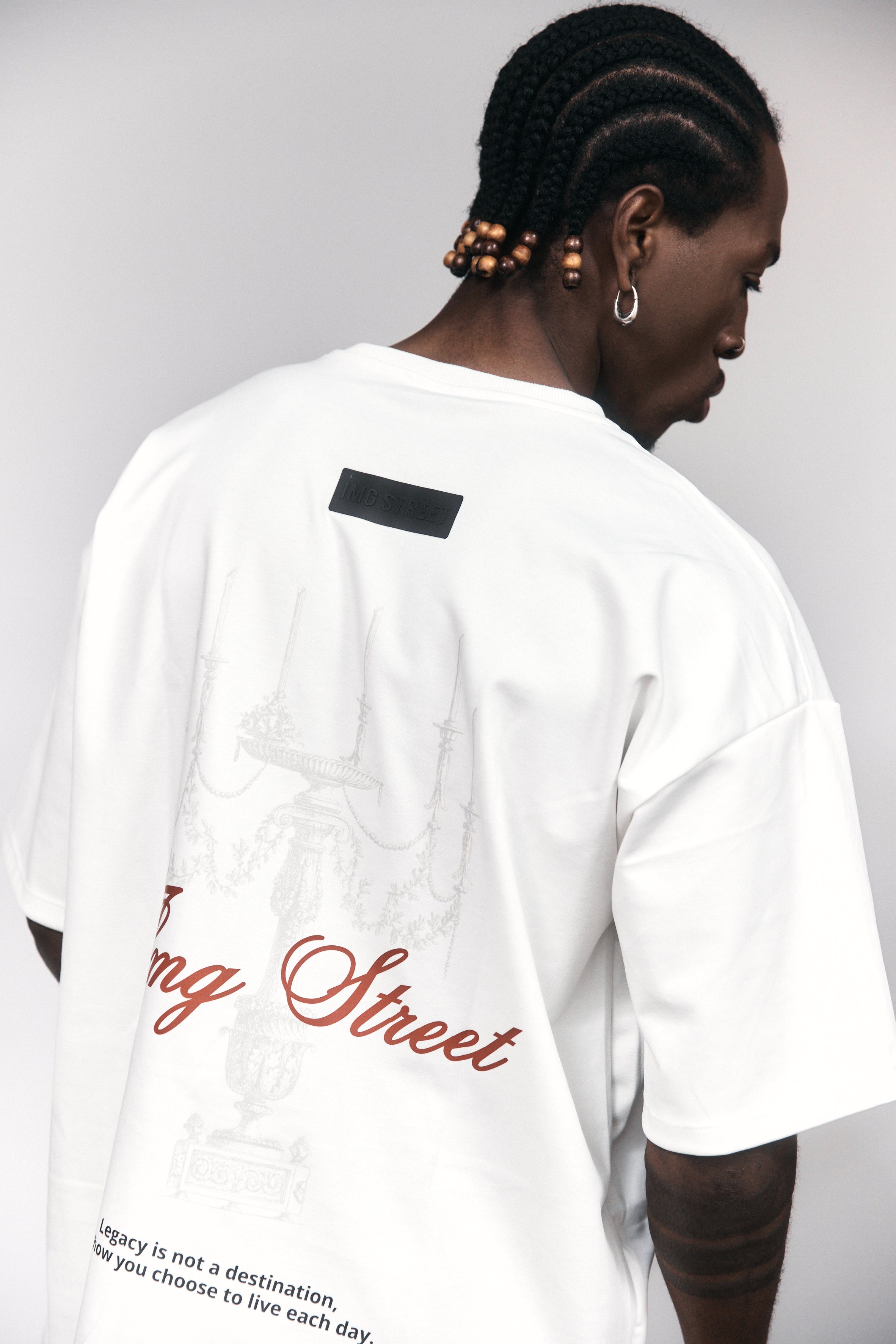 Camiseta oversized en algodón de alto gramaje de 270. Estampado grafico en la parte de atras, con letras en alta densidad