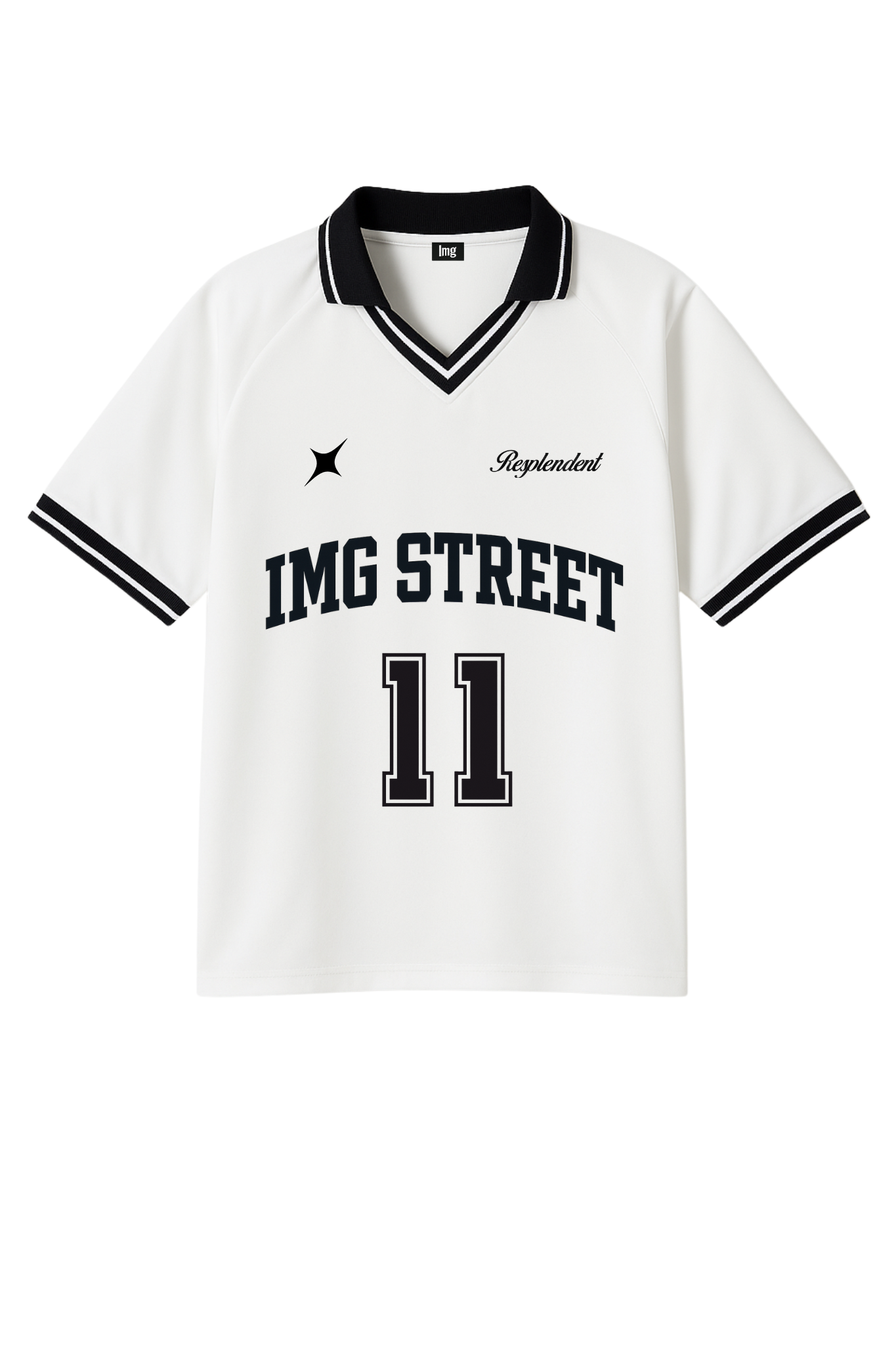 Camiseta oversized tipo polo color hueso, con cuello tipo polo color negro, y corte cuello V elaborado en tela Lacoste premium en algodón 320g y un estampado en alta densidad adelante.
