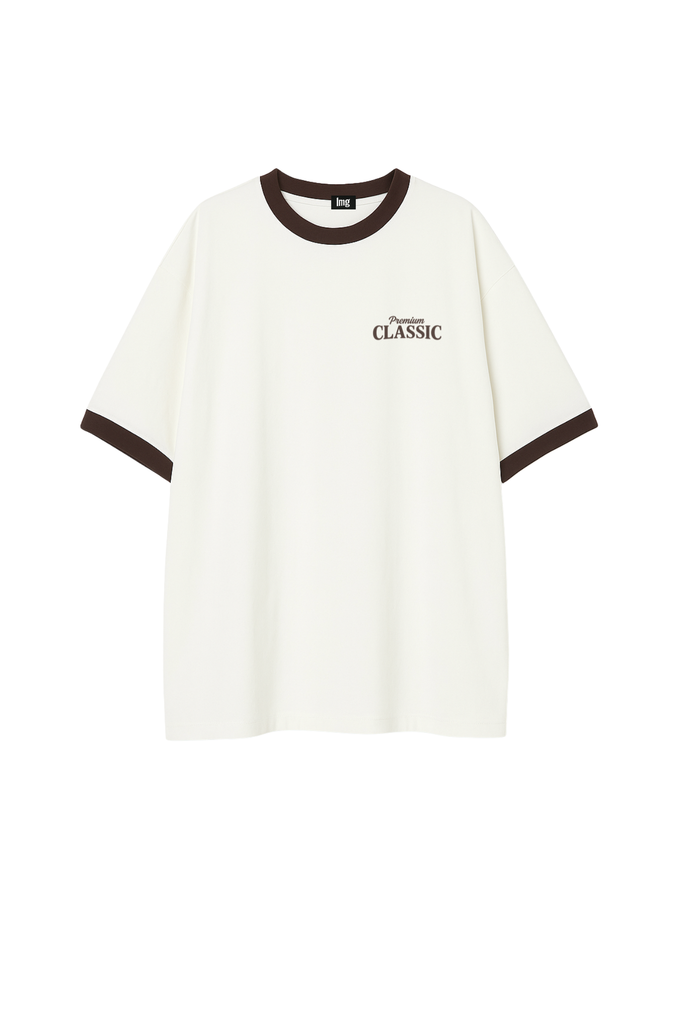 Camiseta oversized en algodón de alto gramaje de 270. cuello redondo cafe y mangas cafes, Estampado grafico en la parte de atras.