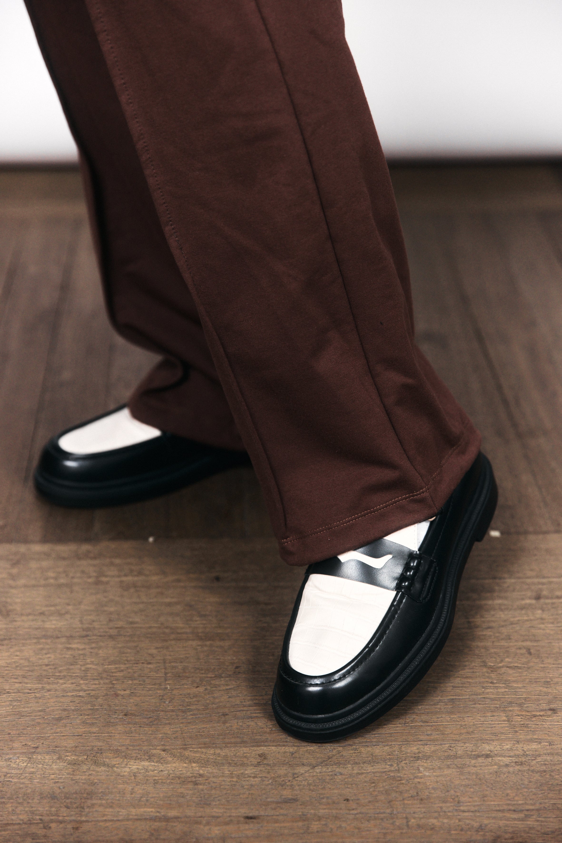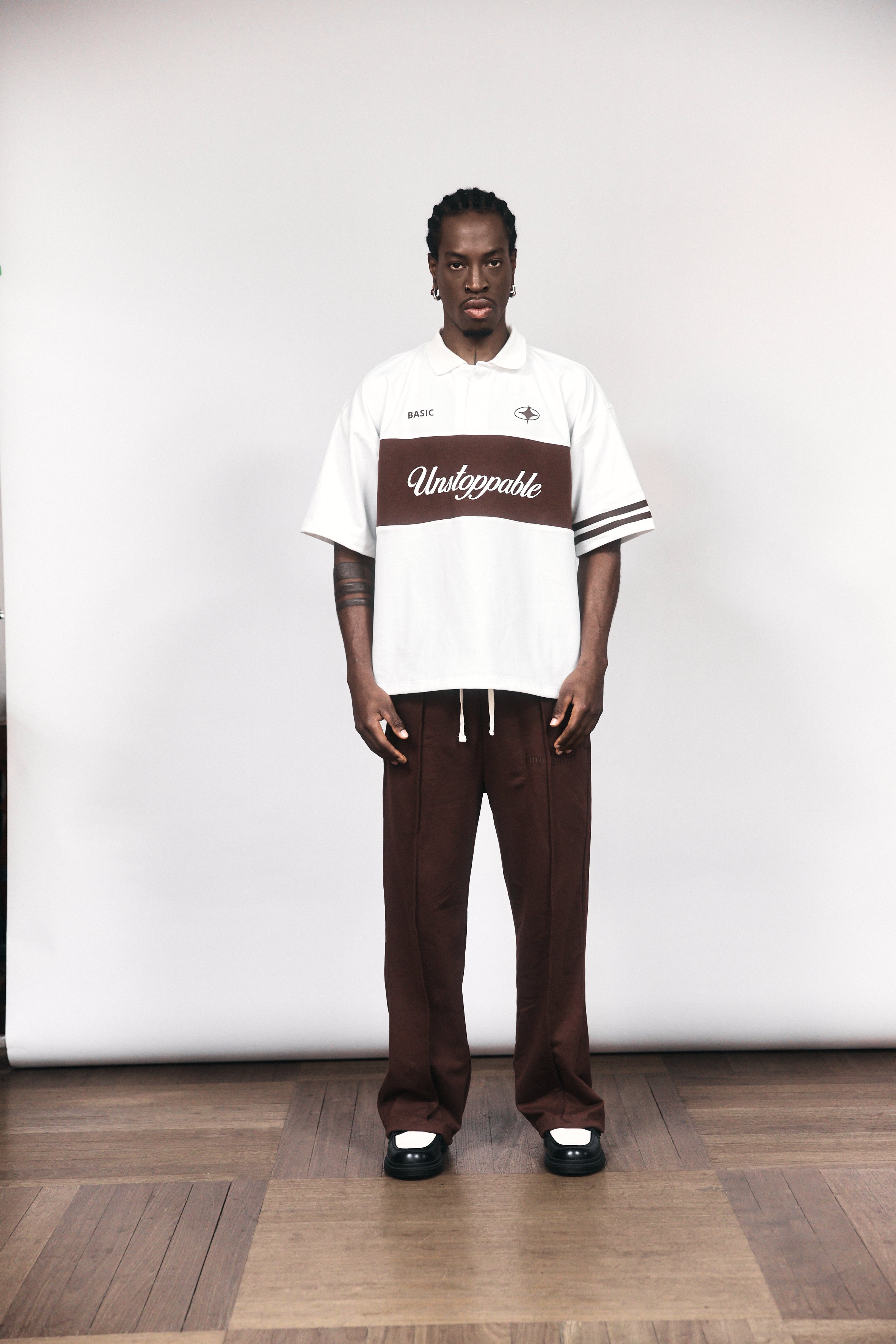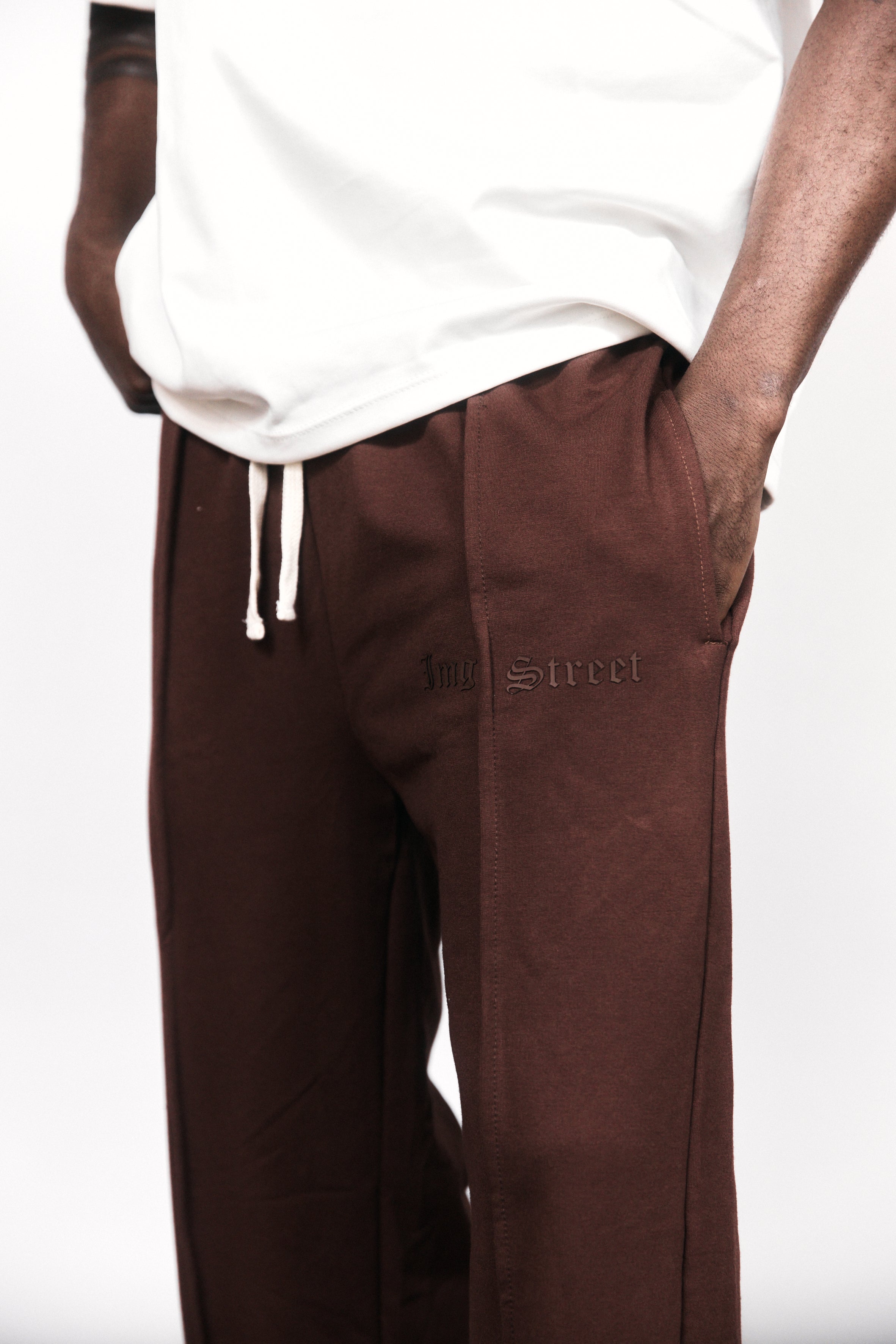 El pantalón negro elaborado en burda premium de 380g, es una prenda base, sobria y dominante, tal como lo es una figura patriarcal en una familia o linaje, cuenta con estampado negro en alta densidad y costura de alto relieve en la parte central a cada lado.